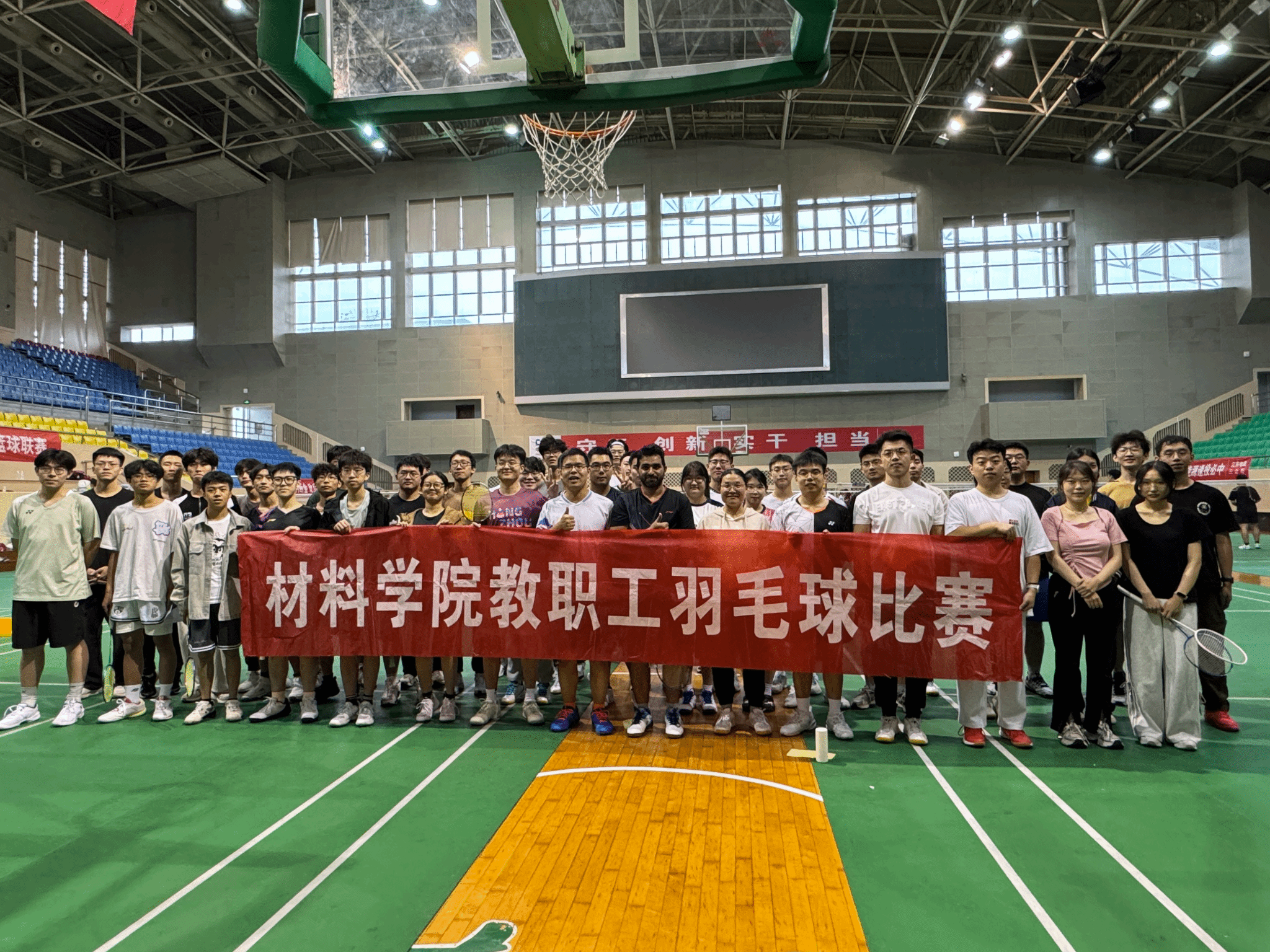 为加强教职工体育锻炼,增进系所之间交流互动,10月19日上午,材料学院在校体育馆开展2025年教职工羽毛球比赛。比赛由材料学院工会组织,学院各系所共有8支队伍共计约40人参加比赛。