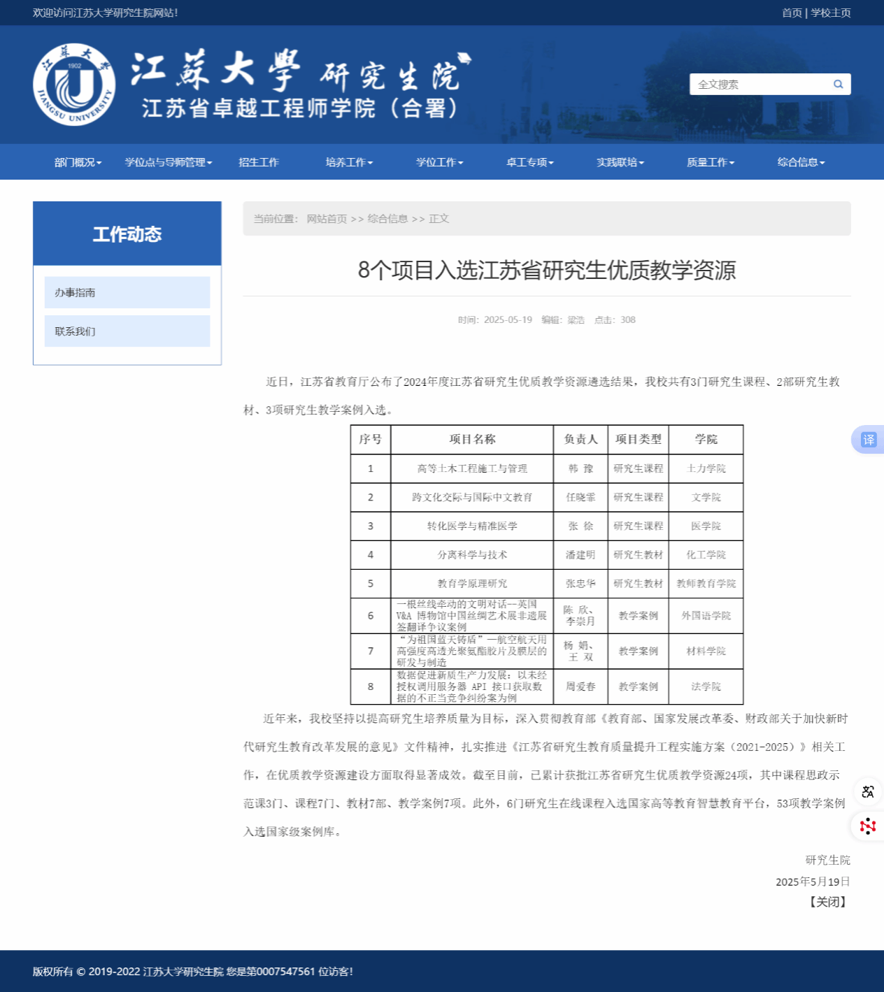 江苏省教育厅公布2024年江苏省研究生优质教学资源遴选结果,我院教学案例“为祖国蓝天铸盾”成功入选。这一成果是学院深化研究生教学资源建设的重要体现,材料学院将以此为契机,持续推进研究生教学资源优化,助力研究生教育质量提升。